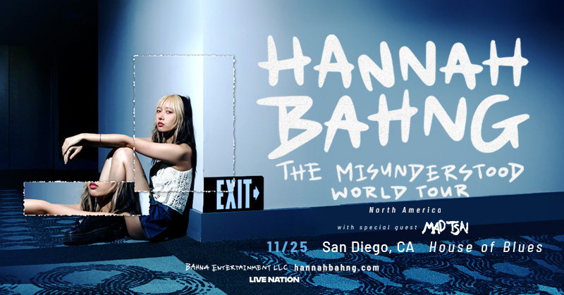 Rising artist Hannah Bahng takes the stage on The Misunderstood World Tour, blending soulful vocals with raw emotion and introspective lyrics. Experience an intimate, unforgettable night of music in the heart of the Gaslamp Quarter.