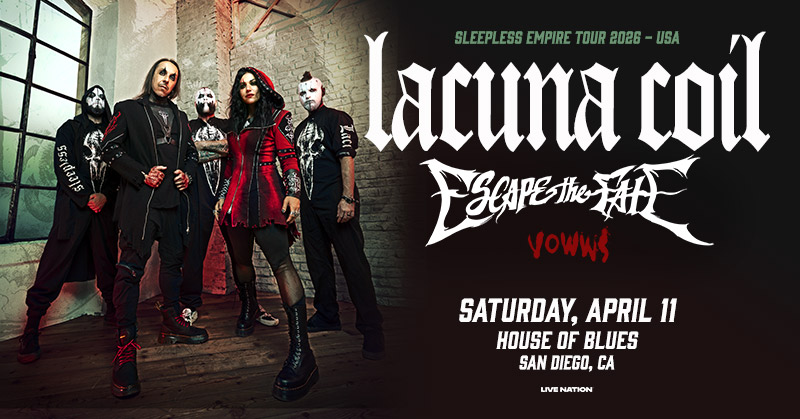Lacuna Coil brings the Sleepless Empire Tour 2026 to House of Blues San Diego for a night of powerful gothic and alternative metal. Known for their dramatic sound, dual vocal style, and electrifying stage presence, the band has become one of the most influential acts in modern metal.
