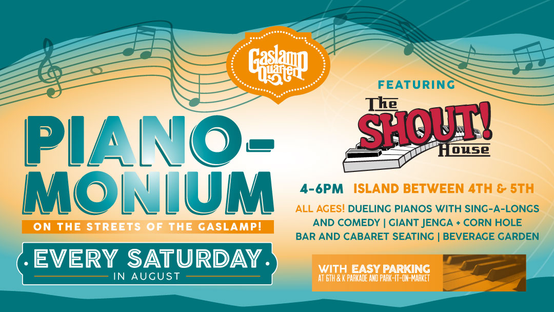 The Gaslamp comes alive every Saturday in August with a  PIANO-MONIUM: On the streets of the Gaslamp!